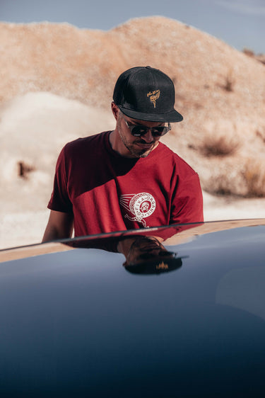 Our burgundy organic design t-shirt is a medium cut made from 100% organic ring-spun combed cotton. This classic crew neck features an awesome petrolhead comic book design and is hand screen printed.