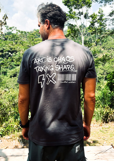 The Art is Chaos t-shirt in Anthracite is a medium-cut men's t-shirt made of 100% organic combed ring-spun cotton. With hand-drawn graphics and screen-printed in Madrid.